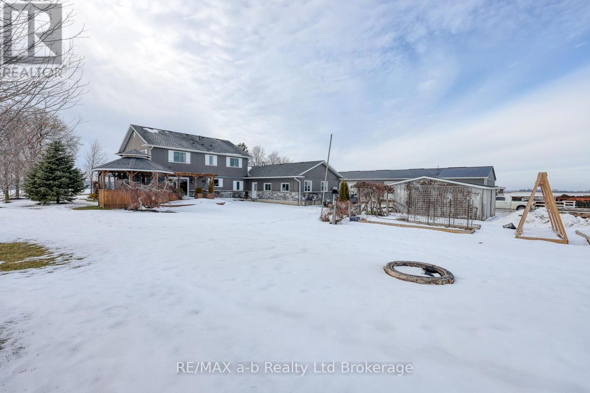 Located just south of Woodstock, this exceptional 5-acre rural estate combines refined country living with first-class infrastructure and turnkey functionality. Set behind a charming white picket fence, the custom-built home offers 4000 sq ft of beautifully finished living space, including four bedrooms, two full bathrooms, a finished basement, and an oversized 27\' x 43\' attached garage, all maintained to an exceptional standard. The freshly remodeled chef\'s kitchen featur…es high-end finishes, a spacious pantry, and ample storage, while the massive main-floor office overlooks the landscaped grounds, creating a serene workspace. Outside, mature maple trees, established gardens, and sweeping countryside views can be enjoyed from the expansive rear deck or the covered wraparound porch. Supporting a true rural lifestyle, the property includes approximately 7,300 sq ft of pristine outbuildings, including a heated shop and a versatile barn currently housing beef cattle, with three acres of pasture directly connected to the barnyard, offering outstanding flexibility for livestock, hobby farming, or other rural pursuits. Whether your passion is raising livestock or simply enjoying the tranquility of country living, this estate provides the perfect canvas for your dreams. (id:14735)