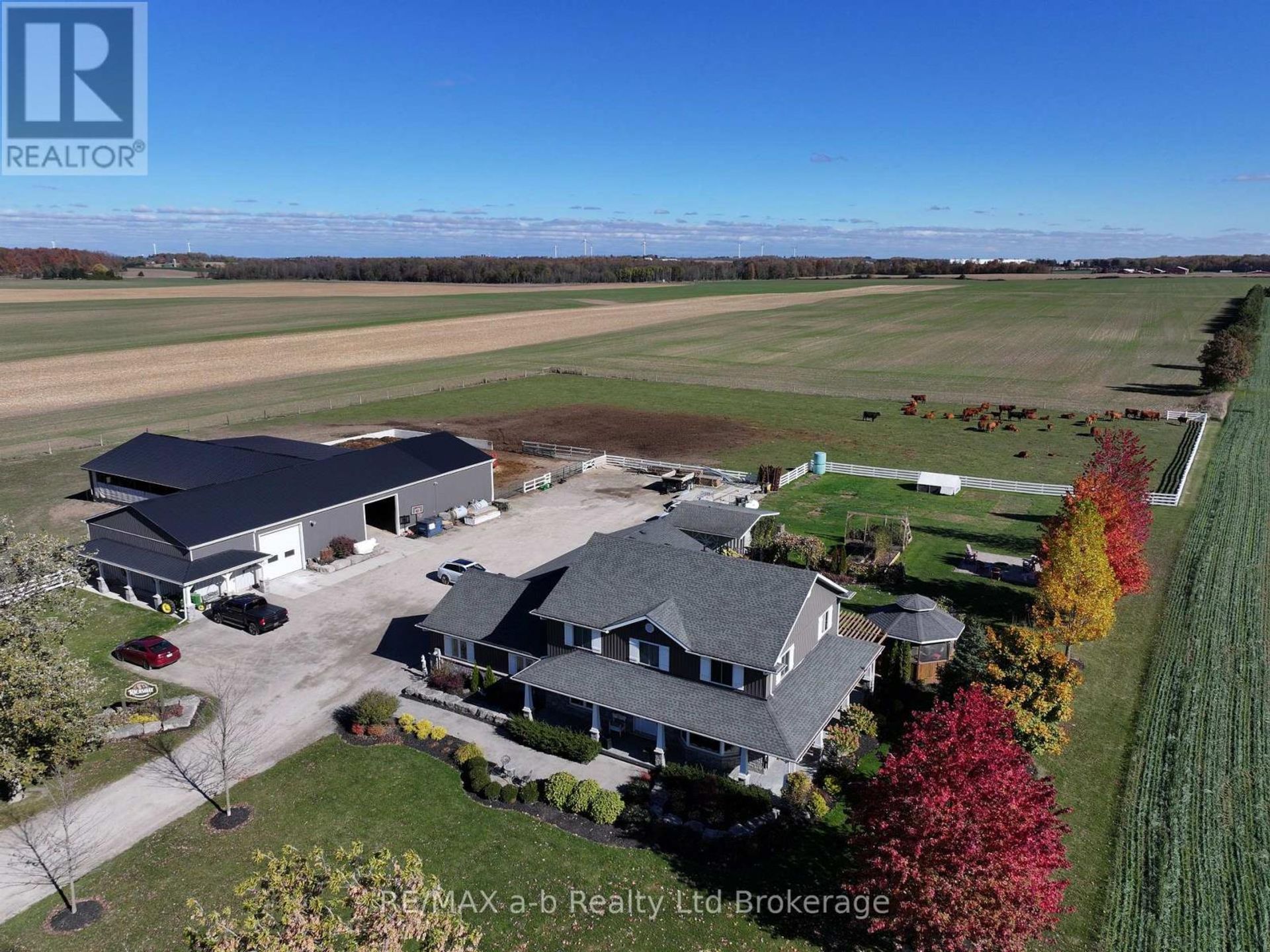 Located just south of Woodstock, this exceptional 5-acre rural estate combines refined country living with first-class infrastructure and turnkey functionality. Set behind a charming white picket fence, the custom-built home offers 4000 sq ft of beautifully finished living space, including four bedrooms, two full bathrooms, a finished basement, and an oversized 27' x 43' attached garage, all maintained to an exceptional standard. The freshly remodeled chef's kitchen features high-end finishes, a spacious pantry, and ample storage, while the massive main-floor office overlooks the landscaped grounds, creating a serene workspace. Outside, mature maple trees, established gardens, and sweeping countryside views can be enjoyed from the expansive rear deck or the covered wraparound porch. Supporting a true rural lifestyle, the property includes approximately 7,300 sq ft of pristine outbuildings, including a heated shop and a versatile barn currently housing beef cattle, with three acres of pasture directly connected to the barnyard, offering outstanding flexibility for livestock, hobby farming, or other rural pursuits. Whether your passion is raising livestock or simply enjoying the tranquility of country living, this estate provides the perfect canvas for your dreams. (id:14735)
